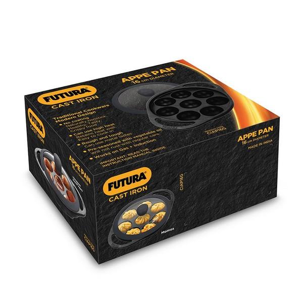 The Hawkins Futura Cast Iron Appe Pan is a versatile kitchen essential, crafting a variety of snacks from traditional appe to Aloo Bonda, Paneer kebabs, and more, all in minutes. Enjoy healthier, tastier, and crispier meals without the need for artificial coatings. Its ability to retain heat ensures even cooking and delicious results every time. As this frying pan is rugged, you can confidently use metal ladles without worrying about damaging its surface. This pan comes pre-seasoned with vegetable oil, ensuring long-lasting durability and effortless maintenance. The heat-proof glass lid features a food-grade silicone rim for a secure fit and added convenience. The high-dome glass lid accommodates food expansion without sticking. Experience years of faithful service with this tough pan.