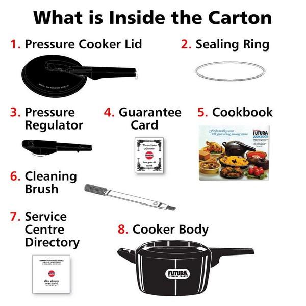 - Package Contents: 1-Piece Futura Hard Anodised Aluminum Pressure Cooker (3 Litres);Warranty Information: 5 Years
