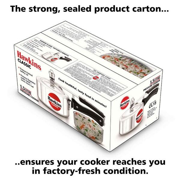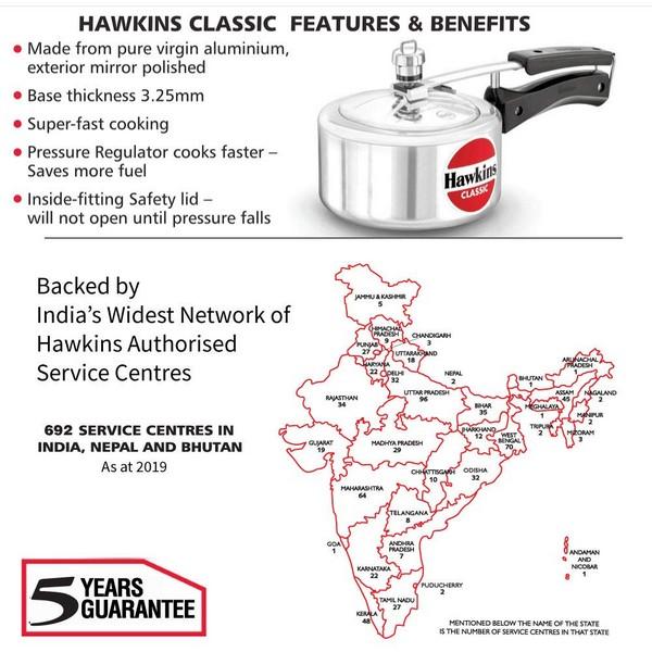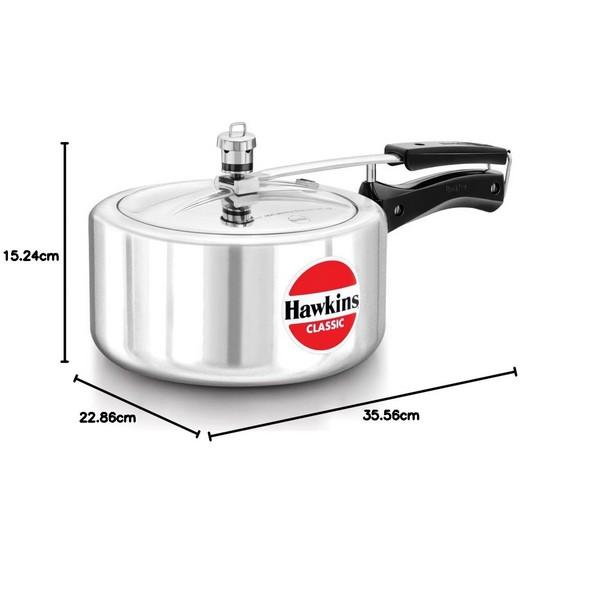 The Hawkins Classic Aluminium Pressure Cooker is built with an inside-fitting lid for safety. This design makes this pressure cooker pressure-locked like a jetliner door.