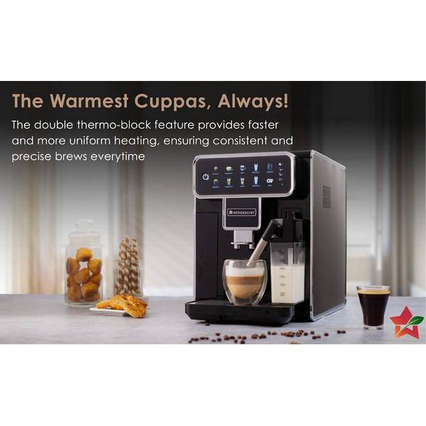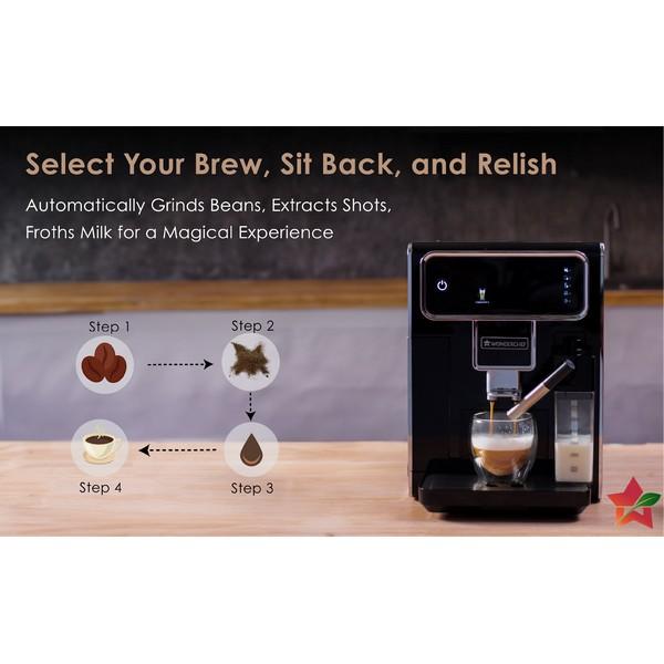 One Touch Coffee Experience: Enjoy perfect espresso, cappuccino or latte with Wonderchef Regenta Fully-Automatic Coffee Machine. This bean-to-cup fully automatic machine grinds the beans for that fresh taste every time, and even froths the milk automatically so you can have the perfect experience at the touch of a button.