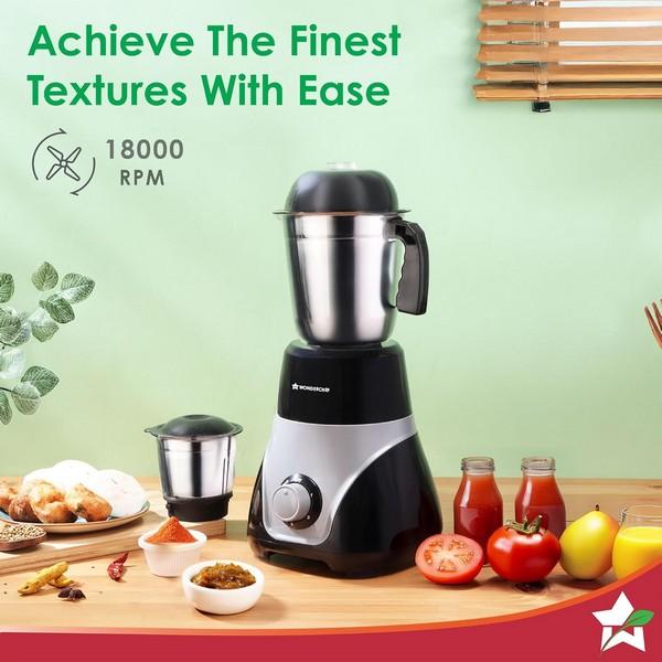 - One Machine, Many Possibilities: The Galaxy Mixer Grinder has four jars of varying capacities and super sharp stainless steel blades, perfect for dry grinding, wet grinding, chutney making, juicing, and blending. All-In-One Solution: Be it chutneys, masalas, batters, purees, pastes, podis, milkshakes, or smoothies, the Galaxy mixer grinder handles even the toughest ingredients with ease.