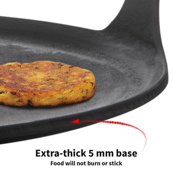 Futura Cast Iron Dosa Tava or Skillet deserves a place in your kitchen: Naturally Nonstick, Healthy, Tasty, Crispy Food - Our cast iron tava / skillet naturally develops a nonstick surface, ensuring your meals are not only delicious but also prepared with minimal oil for a healthier option that doesn't compromise on taste and crispiness. Can Use High Heat - Retains Heat Well - The cast iron material retains and distributes heat evenly, making it a breeze to achieve perfect sears, roasts, and bakes. Rough and Tough - Can Use Metal Ladles - Our dosa tava is rough and tough. You can confidently use metal ladles without worrying about damaging the surface, ensuring longevity and resilience. Pre-Seasoned with Vegetable Oil - Rust-Free with Regular Care - Our cast iron dosa tava comes pre-seasoned with vegetable oil, providing a protective layer that, with regular care, ensures your skillet remains rust-free and ready for action. Extra-Thick 5 mm Base - Food Will Not Burn or Stick - Cook with confidence knowing that the extra-thick 5 mm base prevents burning and sticking. Enjoy evenly cooked meals every time, whether you're searing, frying, or baking. Iron is Widely Regarded as Beneficial for Cooking - adding a subtle nutritional boost to your favorite dishes. Cast Iron is Versatile - Use on Gas, in Oven, on Grill, or Chulha - Our cast iron skillet is incredibly versatile, allowing you to use it on gas stovetops, in the oven, on the grill, or even traditional chulhas.