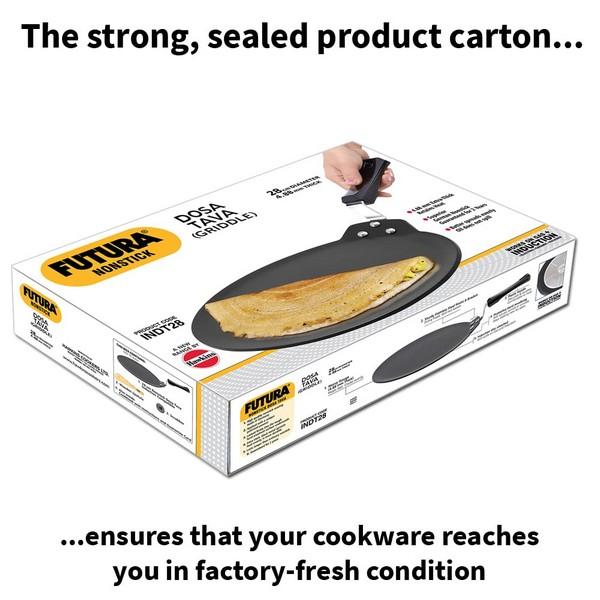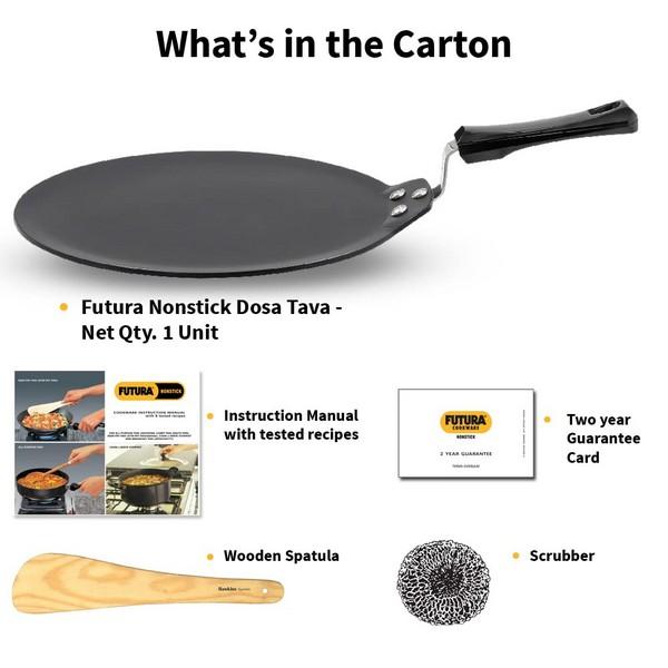 Now preparing tasty dosas and healthy omelets on those busy mornings has become an easy task with the help of this Futura NS Dosa Tawa designed by Hawkins. This Dosa Tawa features a strong and sturdy black body which is made using the finest aluminium material for lasting durability and even heat distribution. This flat tawa makes sure that the food doesn’t stick to the surface as it is finished with non-stick coating . Designed with a non-induction base, this Hawkins Futura NS Dosa Tawa can be used on gas stoves. This tawa can be used to make rotis, parathas, phulkas, French toasts, uttapam and many more.