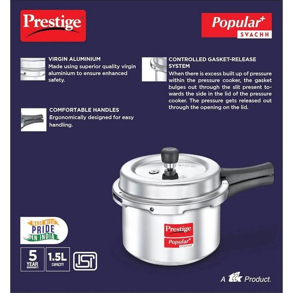 Amount of Rice Cooked :300 grams , Ideal for 3-4 members , Content: Prestige Popular Pressure Cooker 3 L ; Comfortable Handles ; Type of Lid: Outer Lid