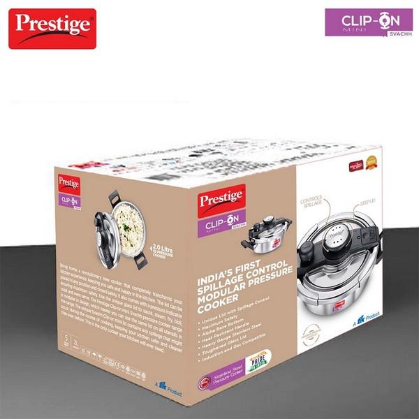 The Prestige Clip-On Svachh pressure cooker range is modular in design, which means you can use the same lid on all utensils in the range.