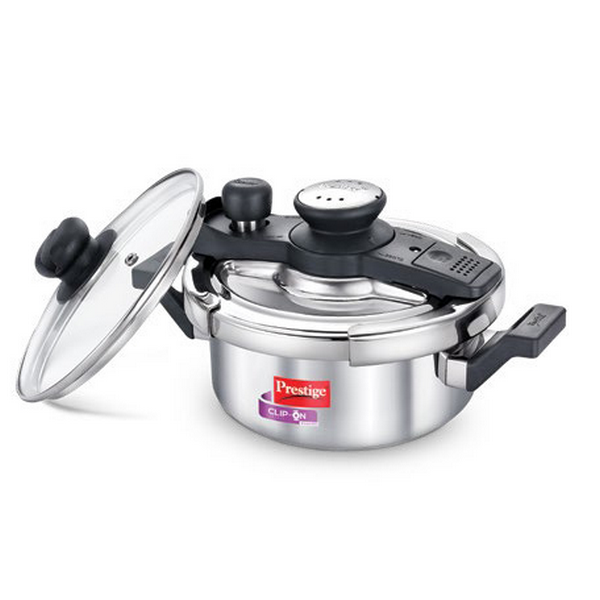Use the unique glass lid to saute, steam, fry, boil, cook and even serve. The Prestige Clip-on Mini Svachh Pressure cooker range is modular in design, which means you can use the same lid on all utensils in the range.
