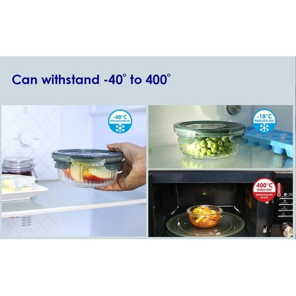 Leak-Proof: The lids have secure and reliable leak-proof silicon seal with secure locks to prevent any spills or leaks, ensuring that the lunch box is suitable for carrying curries and gravies. Odour Free: The non-porous nature of the glass helps in keeping any kind of odour away, and is also stain resistant.